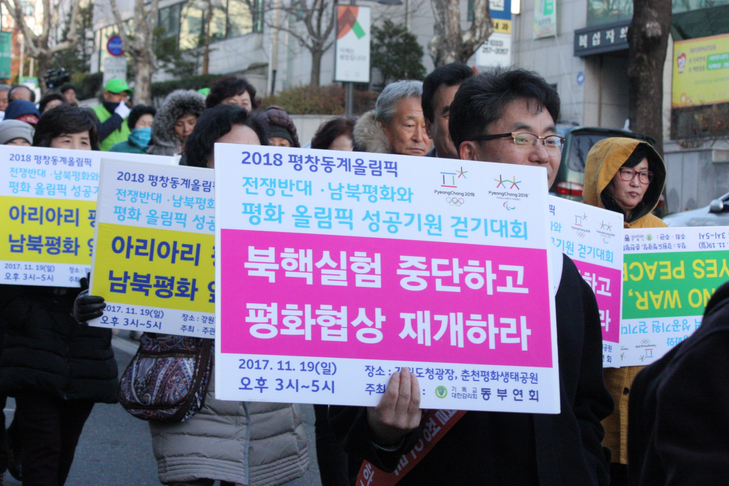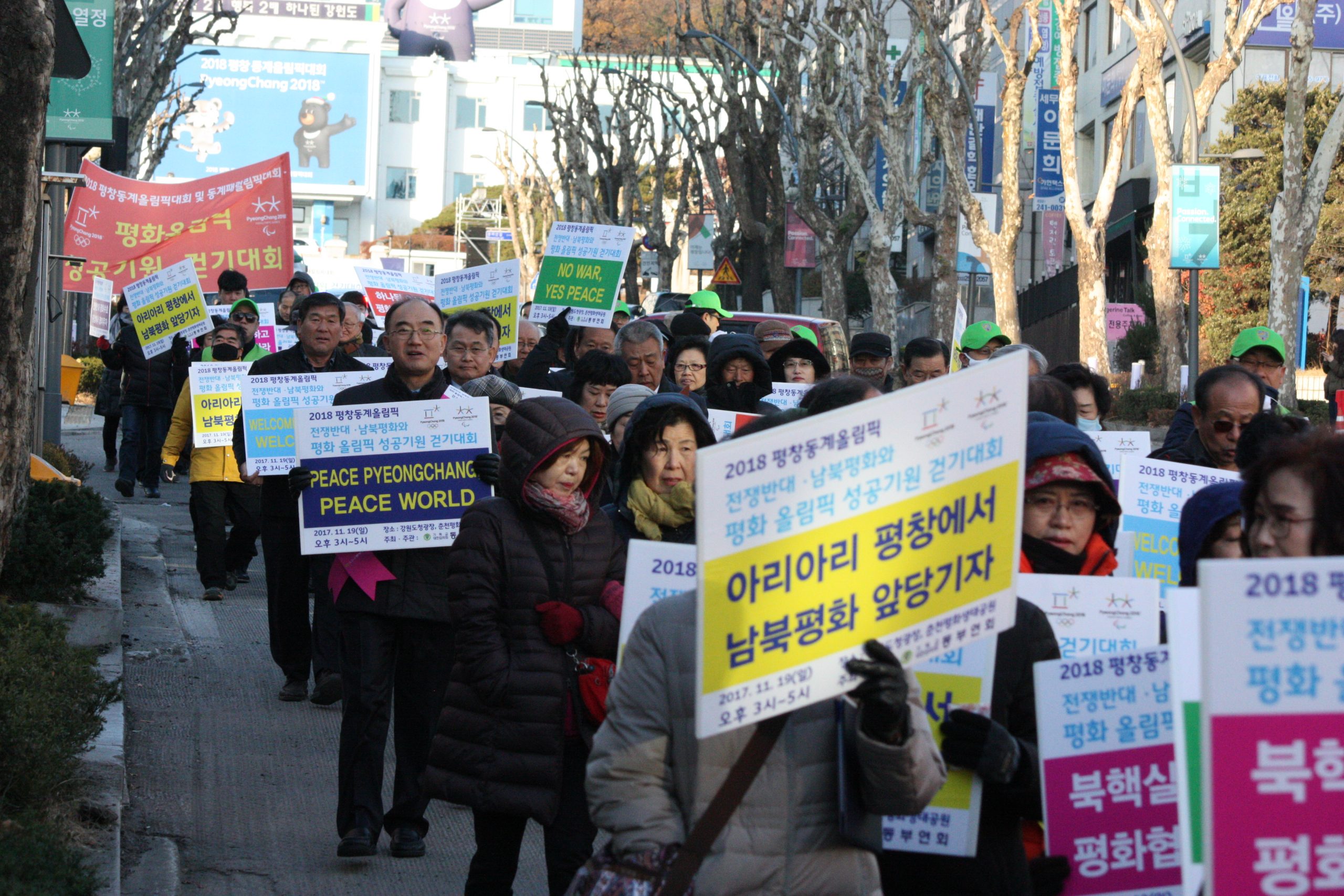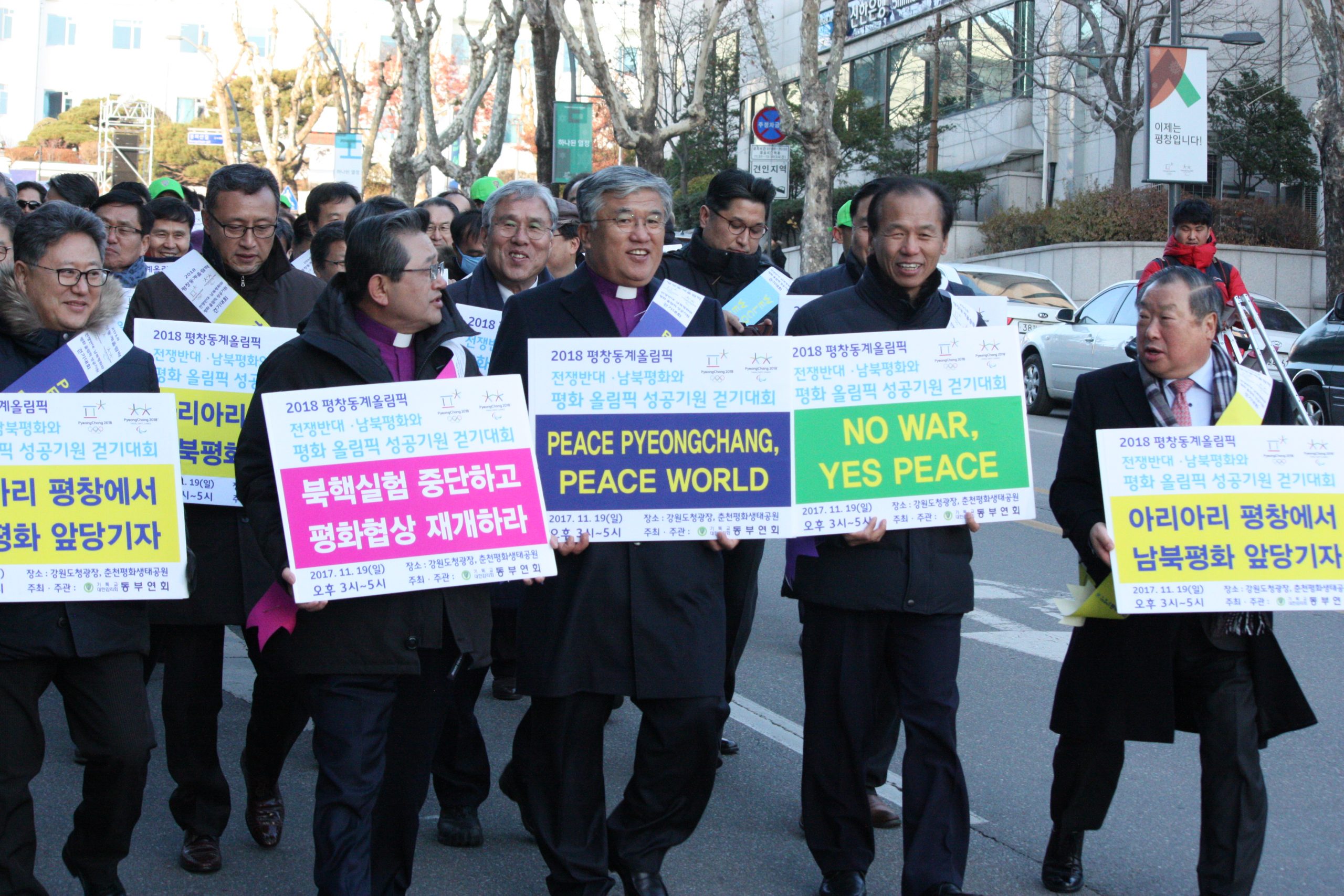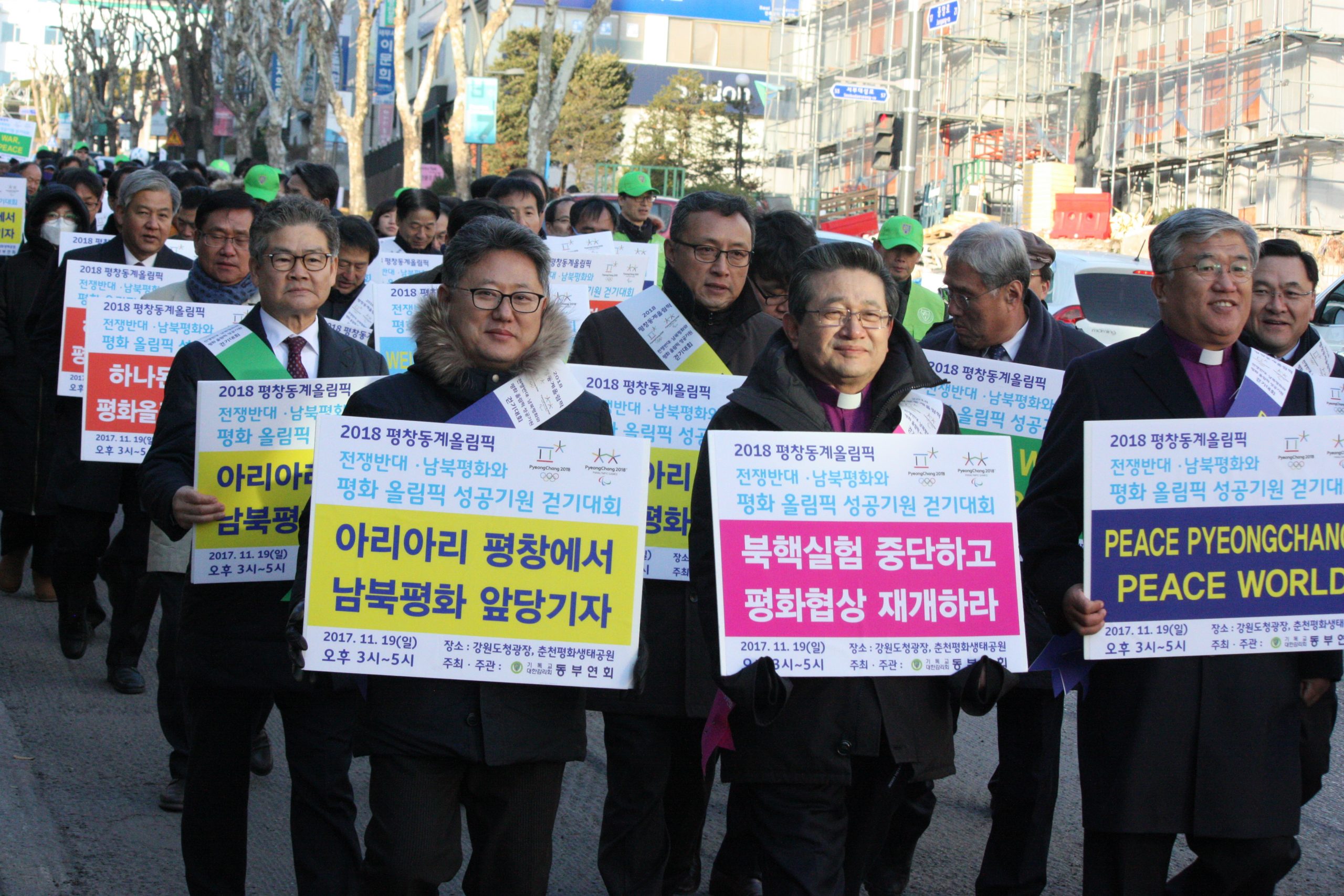 [수완뉴스=도청광장] 오늘 19일 강원도청 광장과 춘천평화생태공원까지 2018 평창 동계올림픽 대회의 평화올림픽으로의 성공개최를 기원하기 위한 걷기대회가 개최했다. 이날 강원도민과 종교인 2,018명과 주요인사 엄기호 한기총 회장, 김선규 한기연 회장, 전명구 기독교감리회 감독회장, 최헌영 기독교감리회 동부연회 감독의 참가한 아래 대회가 진행되었다. 걷기대회는 기독교대한감리회 동부연회의 주최 · 주관으로 열렸으며 평화올림픽 성공기원을 위한 선언문 낭독 등이 있었다.