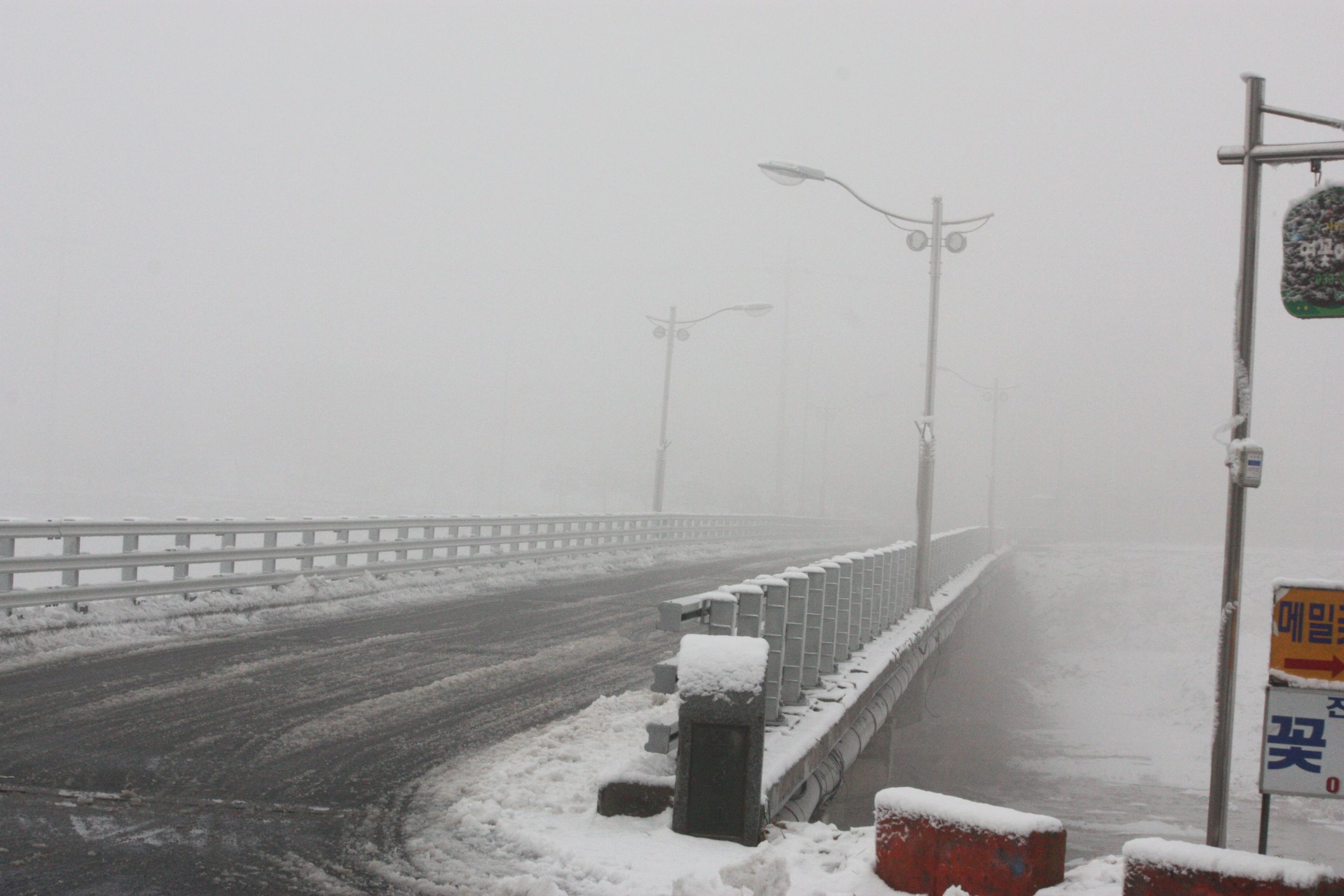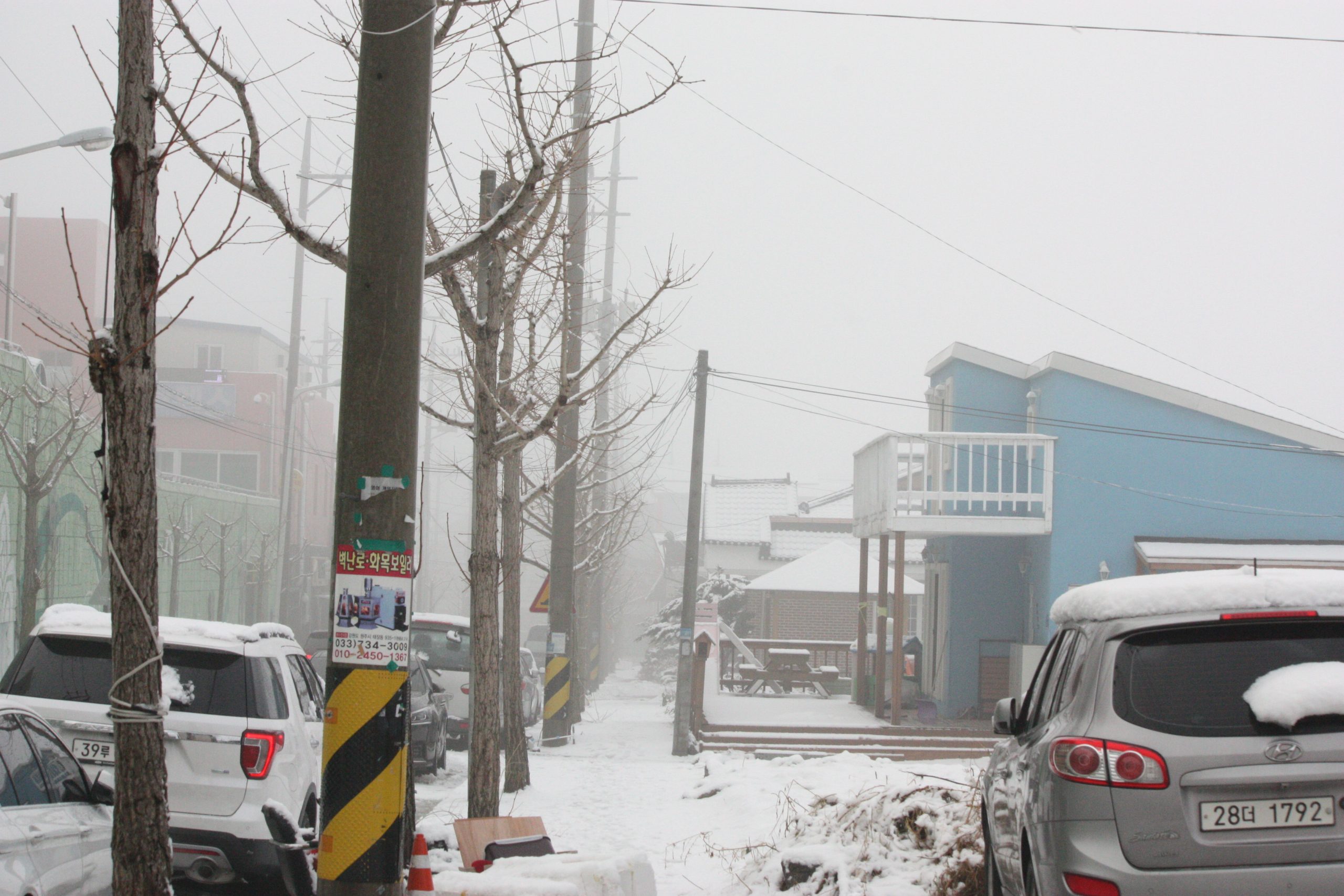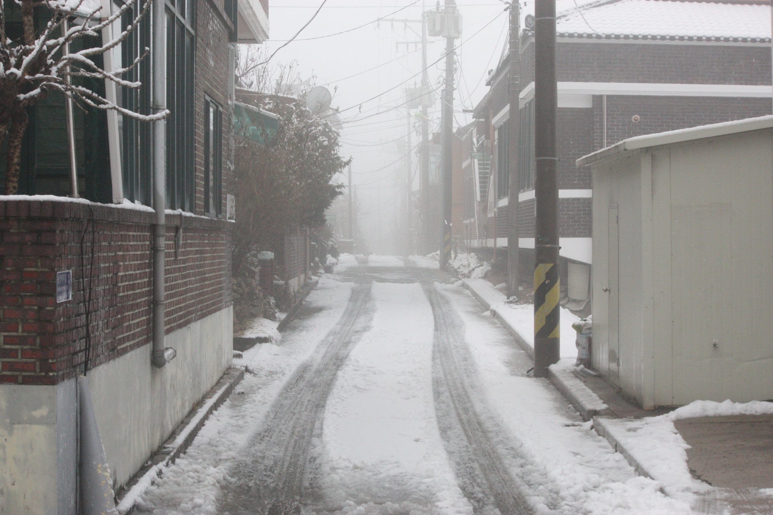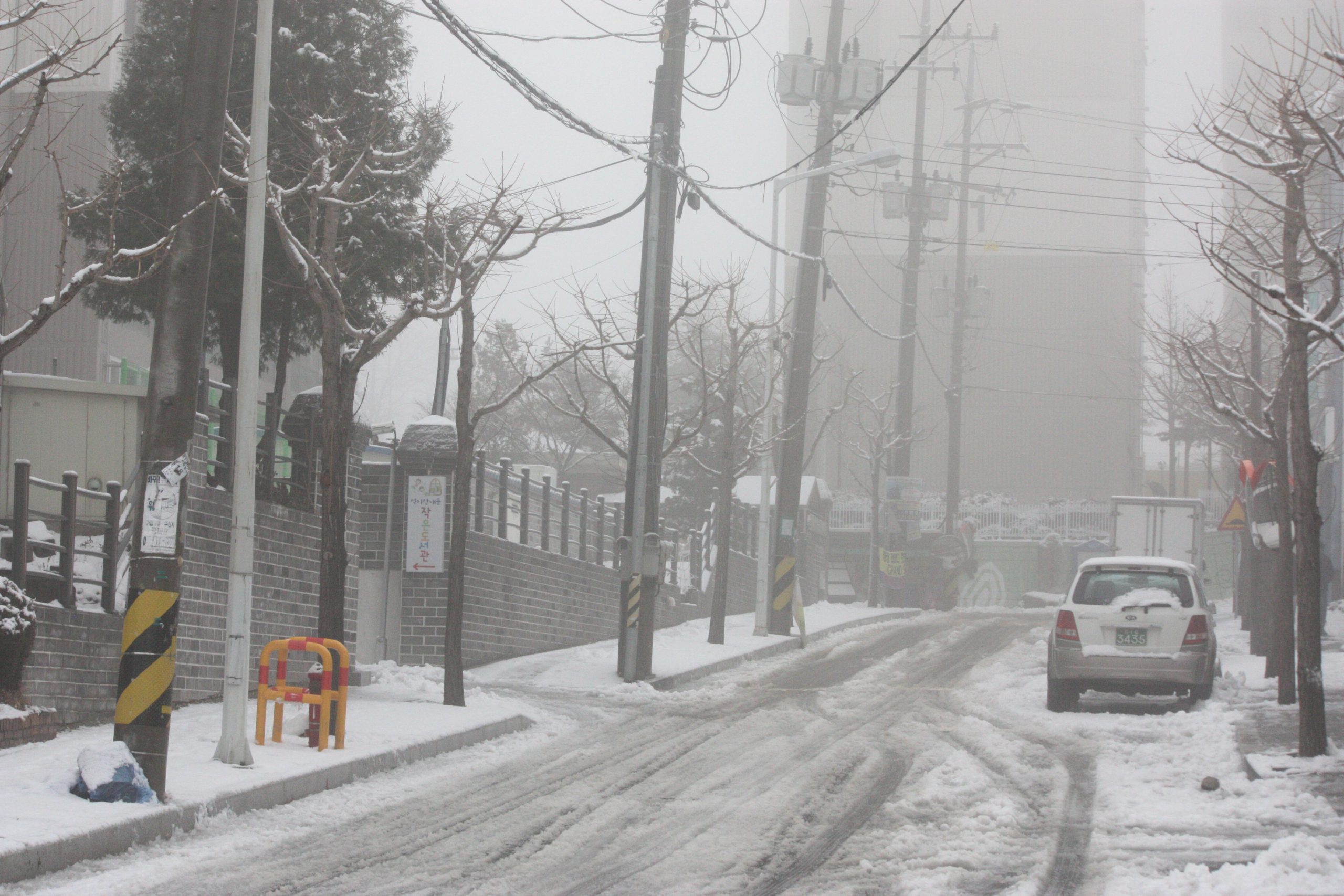 오늘 오전 9시 강원도 평창군 진부면 송정택지 부근의 풍경이다. 새벽사이 눈 오며 빙판길에 미끄러우니 송정택지를 지나는 주민들꼐서는 유의하시기 바랍니다.