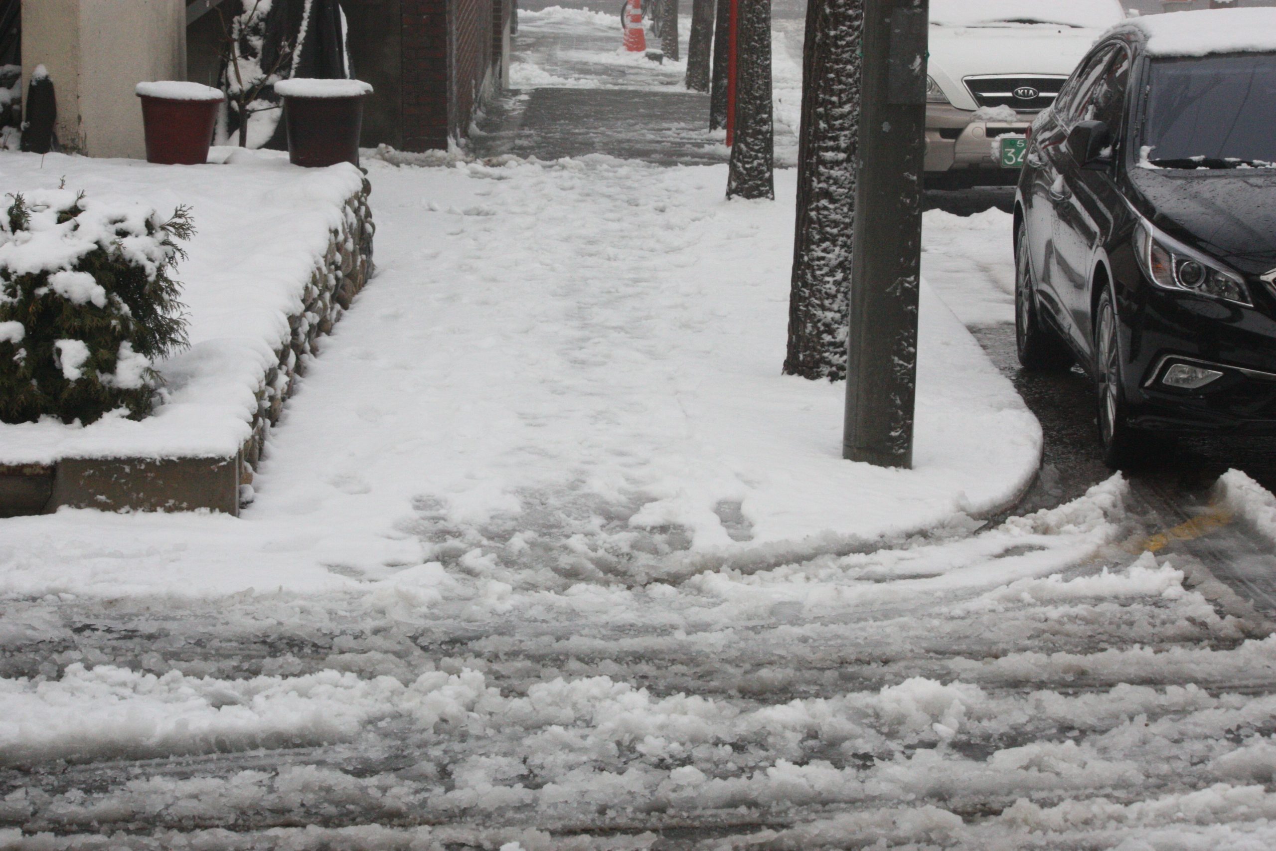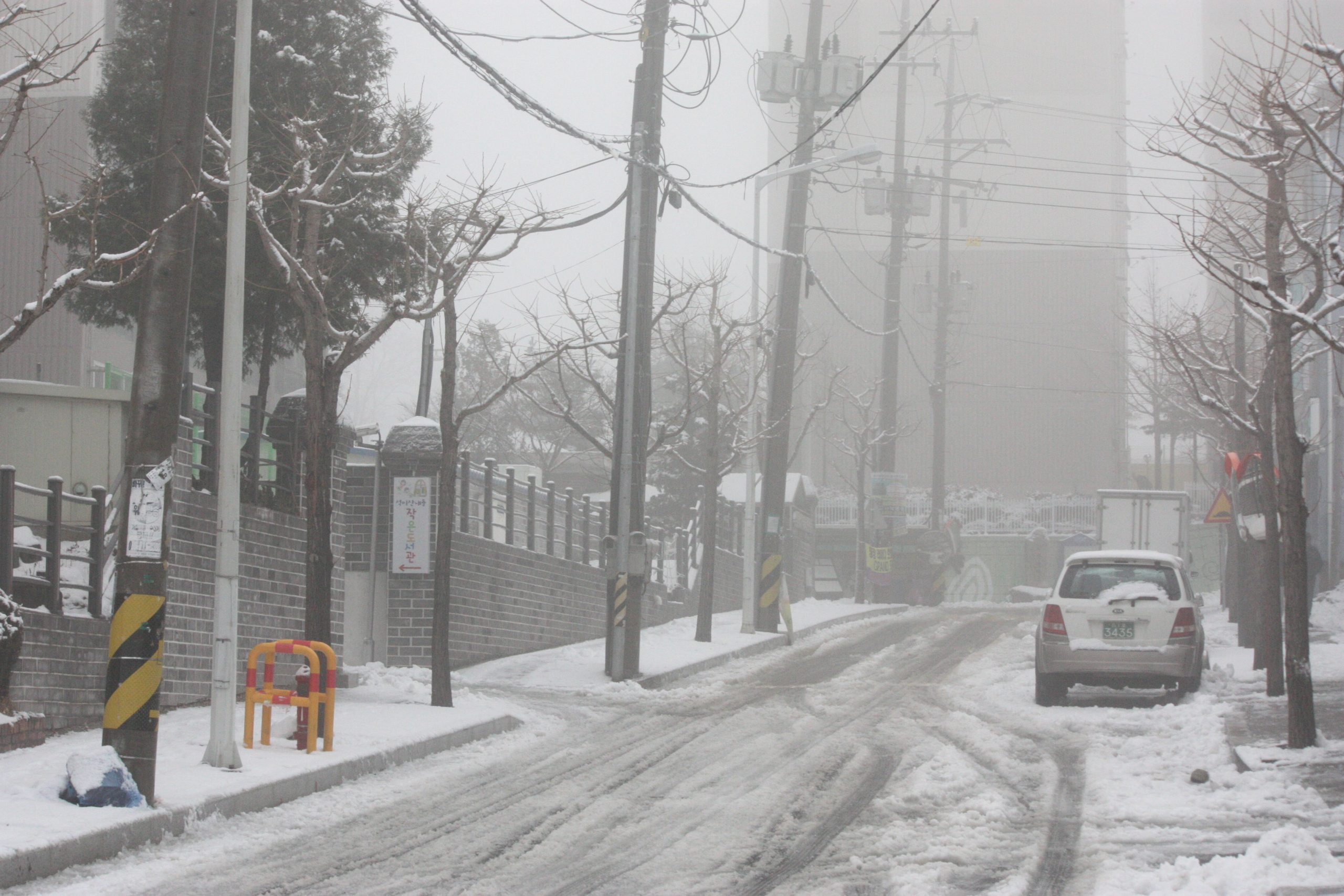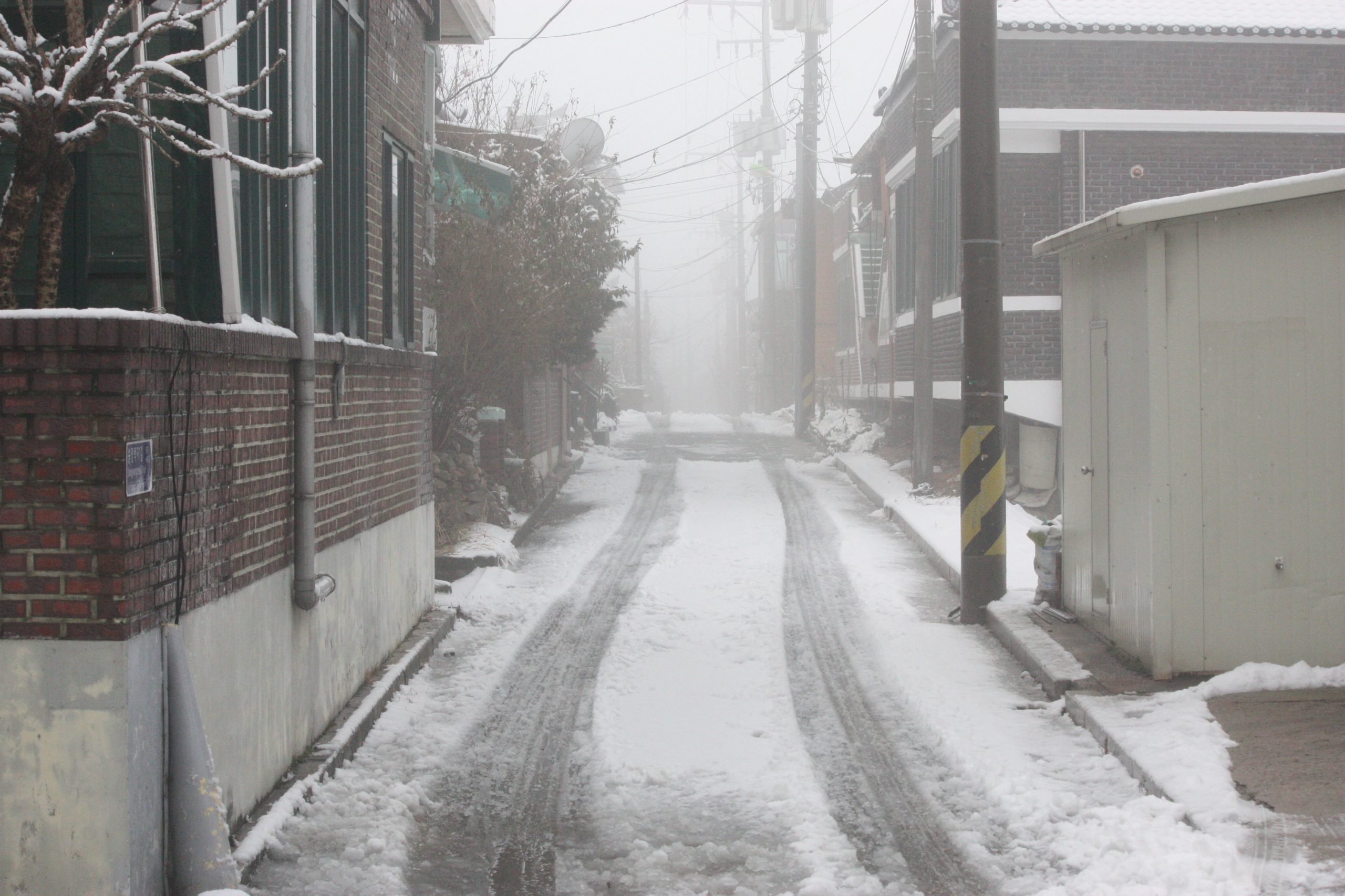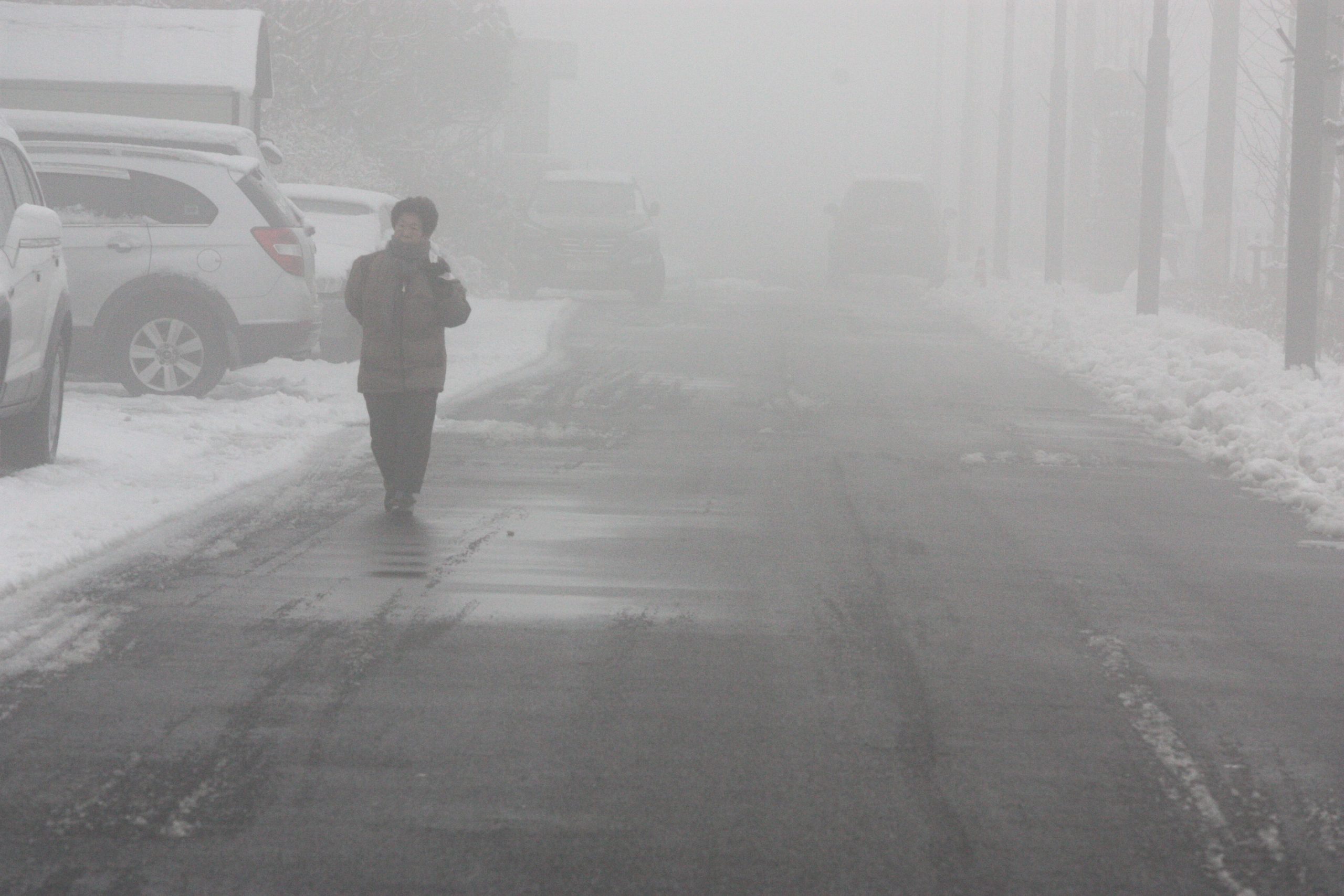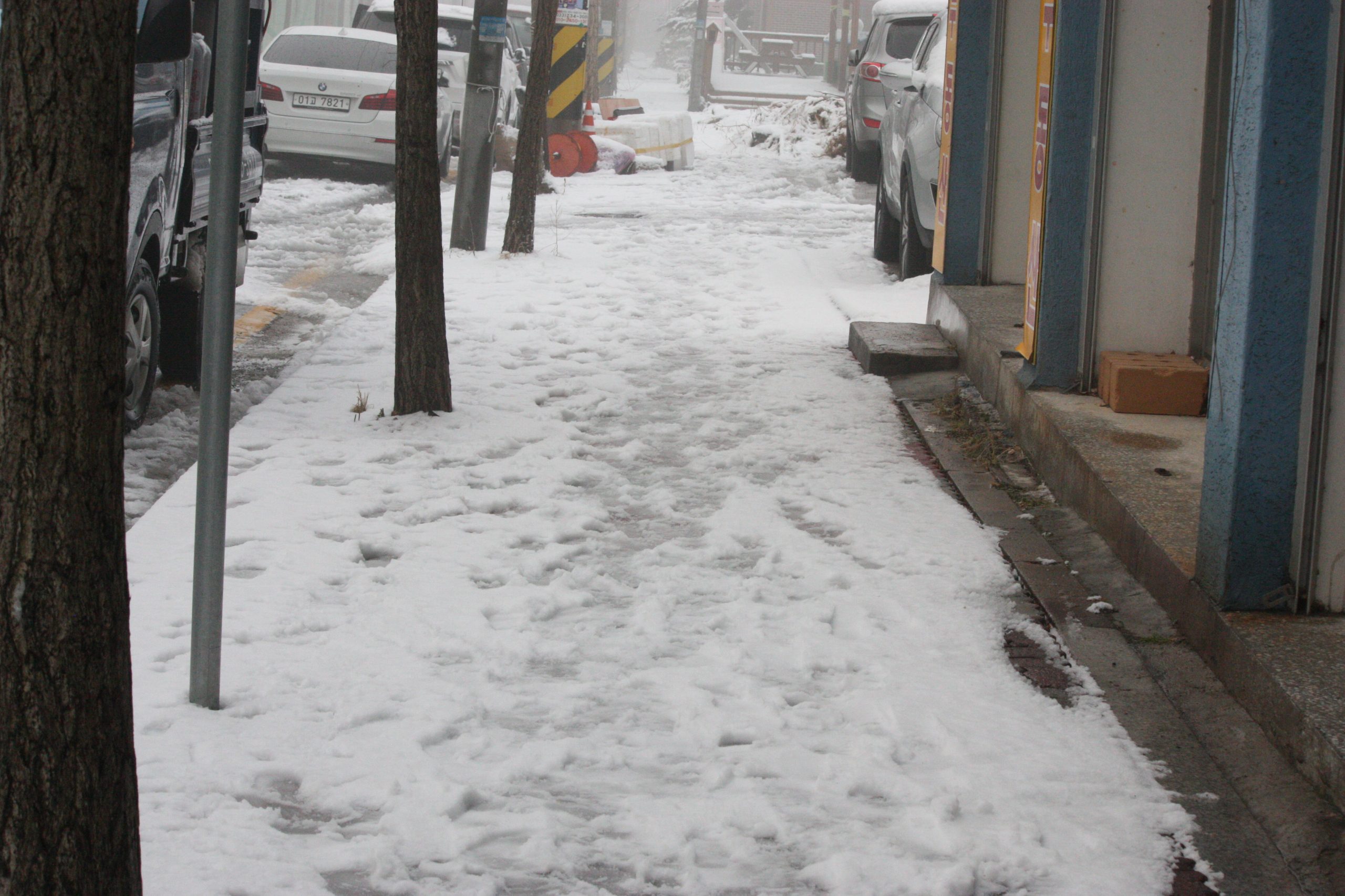 오늘 오전 9시 강원도 평창군 진부면 송정택지 부근의 풍경이다. 새벽사이 눈 오며 빙판길에 미끄러우니 송정택지를 지나는 주민들꼐서는 유의하시기 바랍니다.