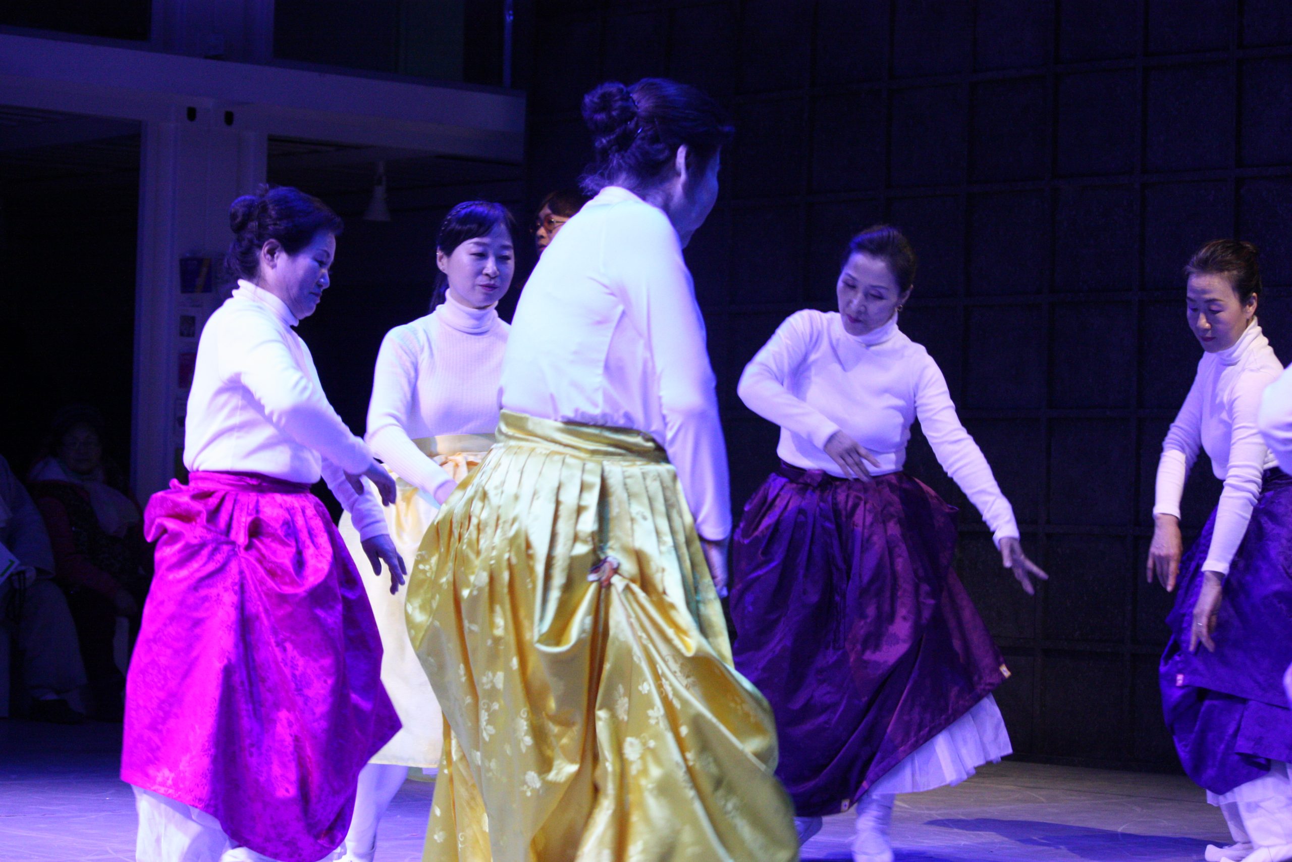 [수완뉴스=평창, 진부] 어제 6일 오후 3시 평창 라이브사이트 공연장에서는 사전행사를 마친 후 무용 언니는 살아있다 공연이 있었다. 평창송어축제장 내 위치한 라이브사이트 공연장에서 열린 이 행사는 예로부터 척박한 땅, 혹독한 추위 속에서 고단한 삶을 이겨내 온 강한 여자들의 이야기를 그린 공연이다. 어린 여자아이가 강산을 걸어다니다, 손에 쥔 작은 씨앗을 흙에 묻고 물을 주고 그 씨앗은 나무가 되며, 모진 바람과 추위를 견뎌내며 숲을 형성하는 과정을 그렸고, 숲의 형상들이 나중에는 거대한 산을 이루며 태백산맥 한가운데 자리를 잡는 이야기를 하고 있다.