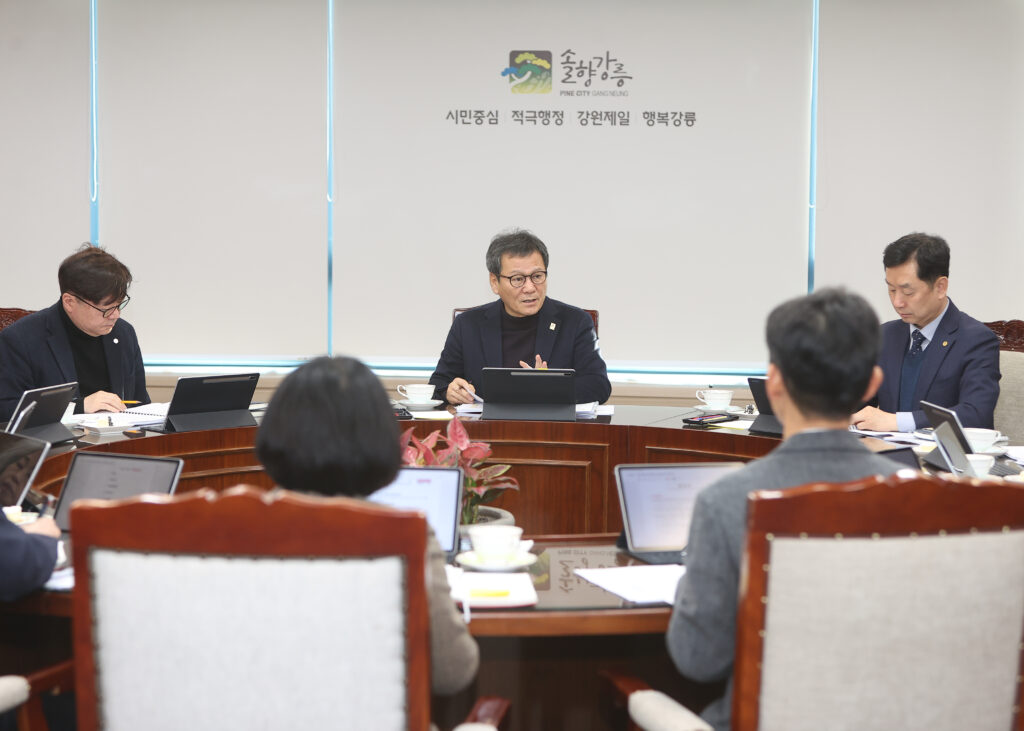 김홍규 강릉 시장은 시장 주재의 제1차 국비확보 전략회의를 지난 3일 열어, 최근 지방교부세 감소에 따라 지방재정 여건이 어려운 만큼 국비 확보가 그 어느 때보다 절실하다”며 “2026년도에 최대한의 국비를 확보할 수 있도록 정부의 예산순기에 맞게 직원들이 적극적으로 대응해주길 바란다”고 당부한 바 있다.(사진=강릉시청 제공)