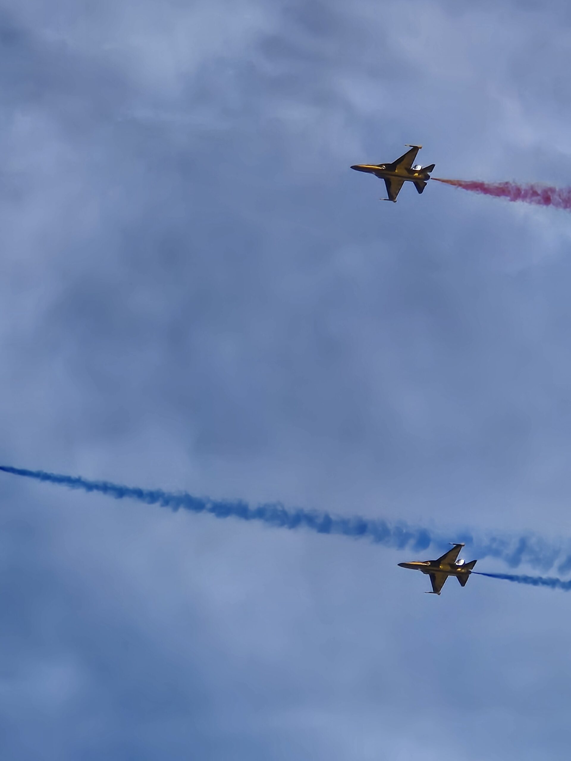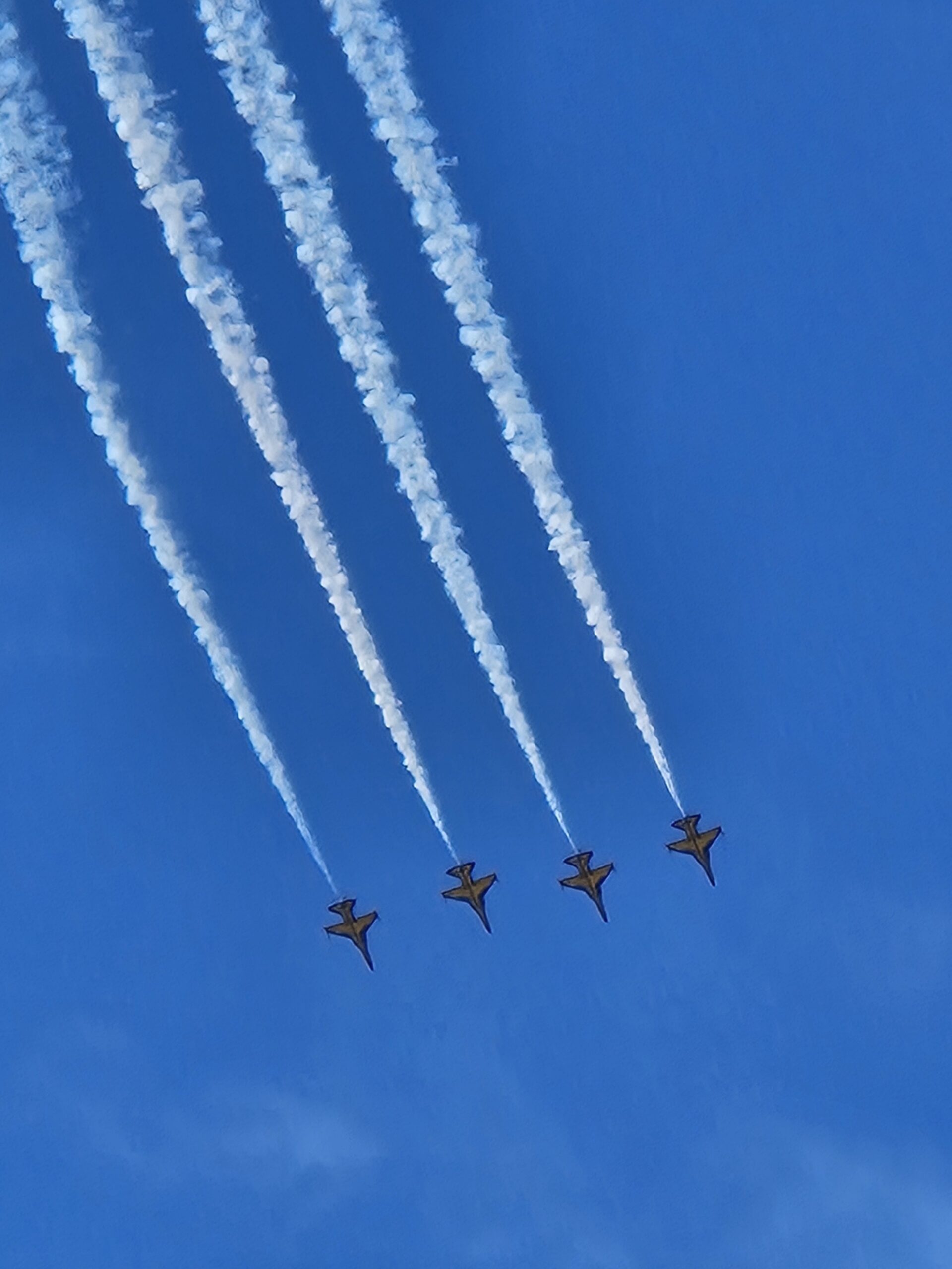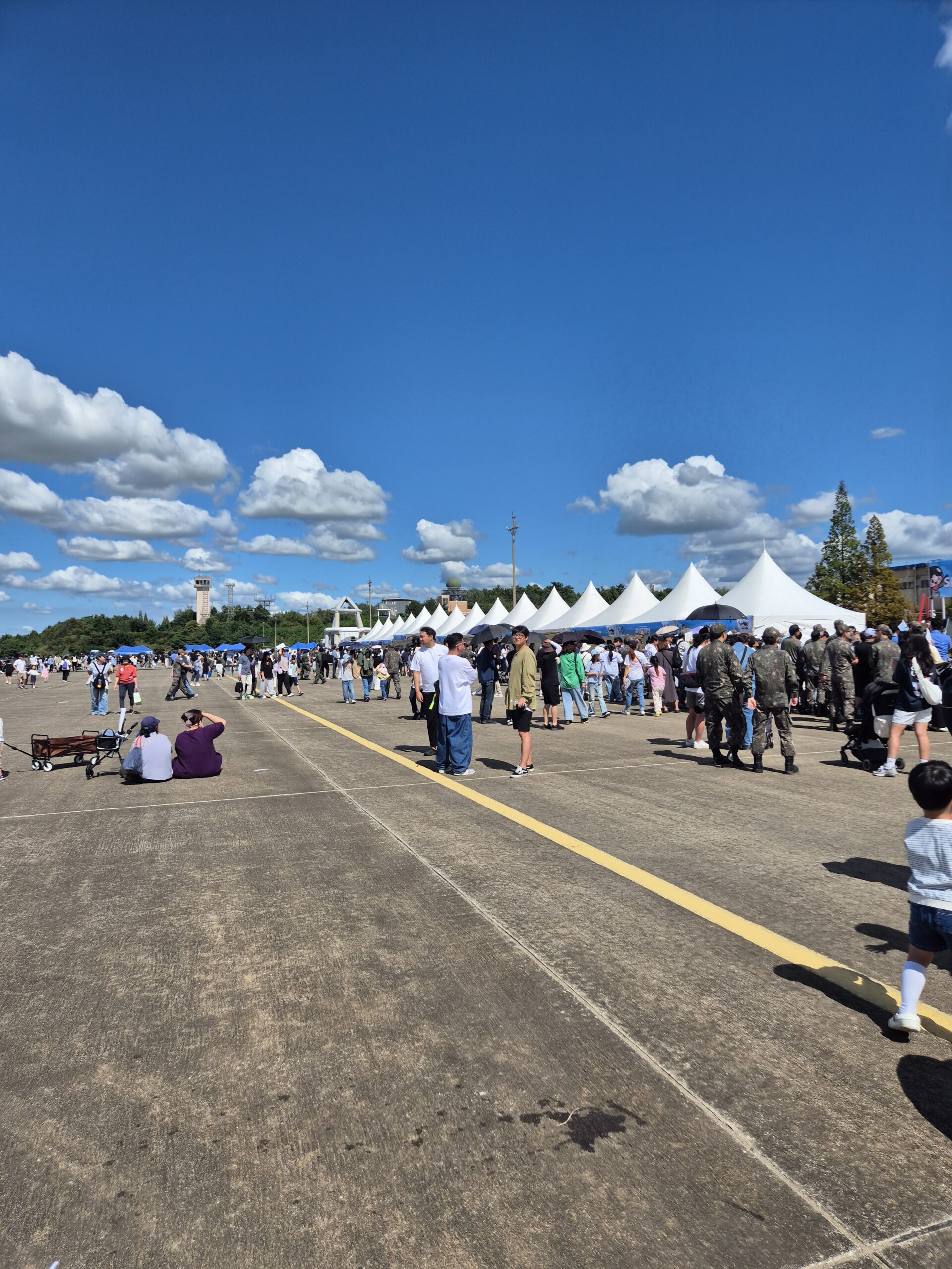 행사의 백미는 역시 블랙이글스 특수비행팀의 곡예비행이었다. 여덟 대의 T-50B 항공기가 정교하고 역동적인 군집 대형을 이루며 하늘을 가로질렀다. 중간에 3번기가 기체 문제로 이탈, 착륙하는 이슈가 벌어지기는 하였으나 거대한 굉음과 함께 펼쳐진 ‘하트’나 ‘태극’ 문양은 관람객들의 탄성을 자아내기에 충분했다. 단순히 시각적 즐거움을 넘어, 최고도의 기량과 팀워크를 요구하는 블랙이글스의 비행은 대한민국 공군이 가진 뛰어난 기술력과 훈련 역량을 상징적으로 보여주었다.
