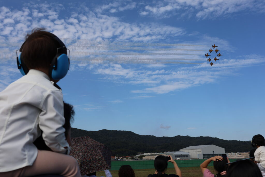[수완뉴스=임주영 기자] 경기 성남시 서울공항에서 서울 ADEX 2025가 지난 10월 17일 열렸다. 한 아이가 아빠 목마를 타며 블랙이글스 축하 비행을 감상하고 있다.